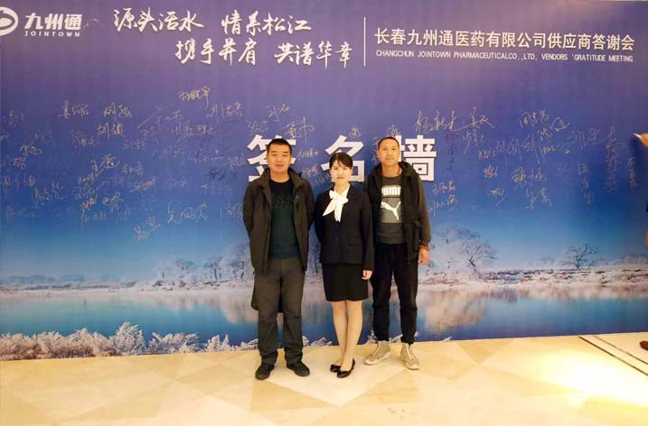 公司重點客戶長春九州通醫(yī)藥有限公司在公司總部舉行了供應商答謝會,公司營銷中心銷售一部總監(jiān)單力軍攜當?shù)貥I(yè)務經(jīng)理參加了此次會議,公司品種在此次會議中較好地完成了促銷任務。